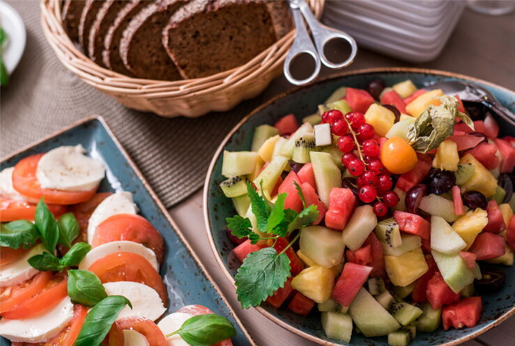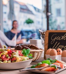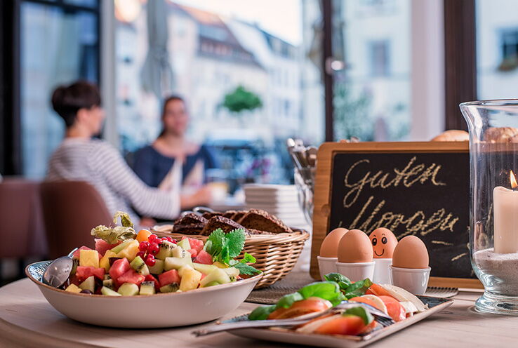 Starten Sie entspannt in den Morgen: In unserem Restaurant Platzhirsch erwartet Sie ein abwechslungsreiches regionales Frühstücksbuffet. Die großen Fenster mit Blick auf den Markt sorgen für viel Tageslicht und lassen Sie das Treiben draußen ganz entspannt beobachten.