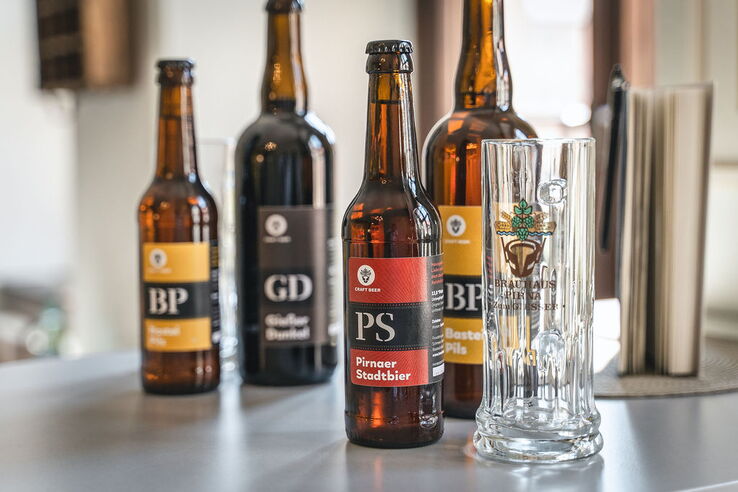 Unser hausgebrautes Bier vom Brauhaus Pirna „Zum Giesser“ ist unfiltriert, naturtrüb und garantiert Ihnen einen besonderen Biergenuss. Sie können aus 3 Biersorten wählen (Bastei Pils, Giesser Dunkel, Pirnaer Stadtbier).